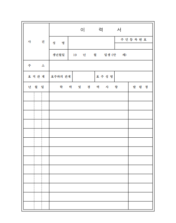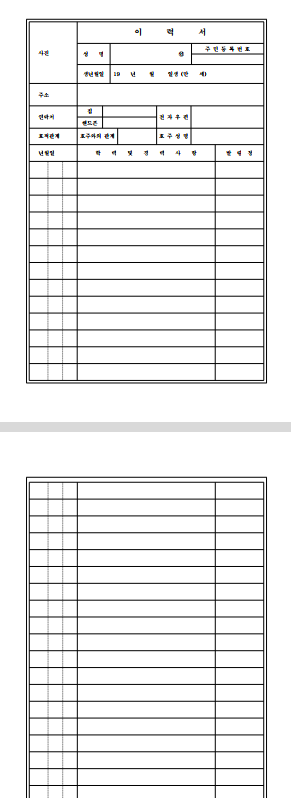 이력서 2장 양식 - 한글