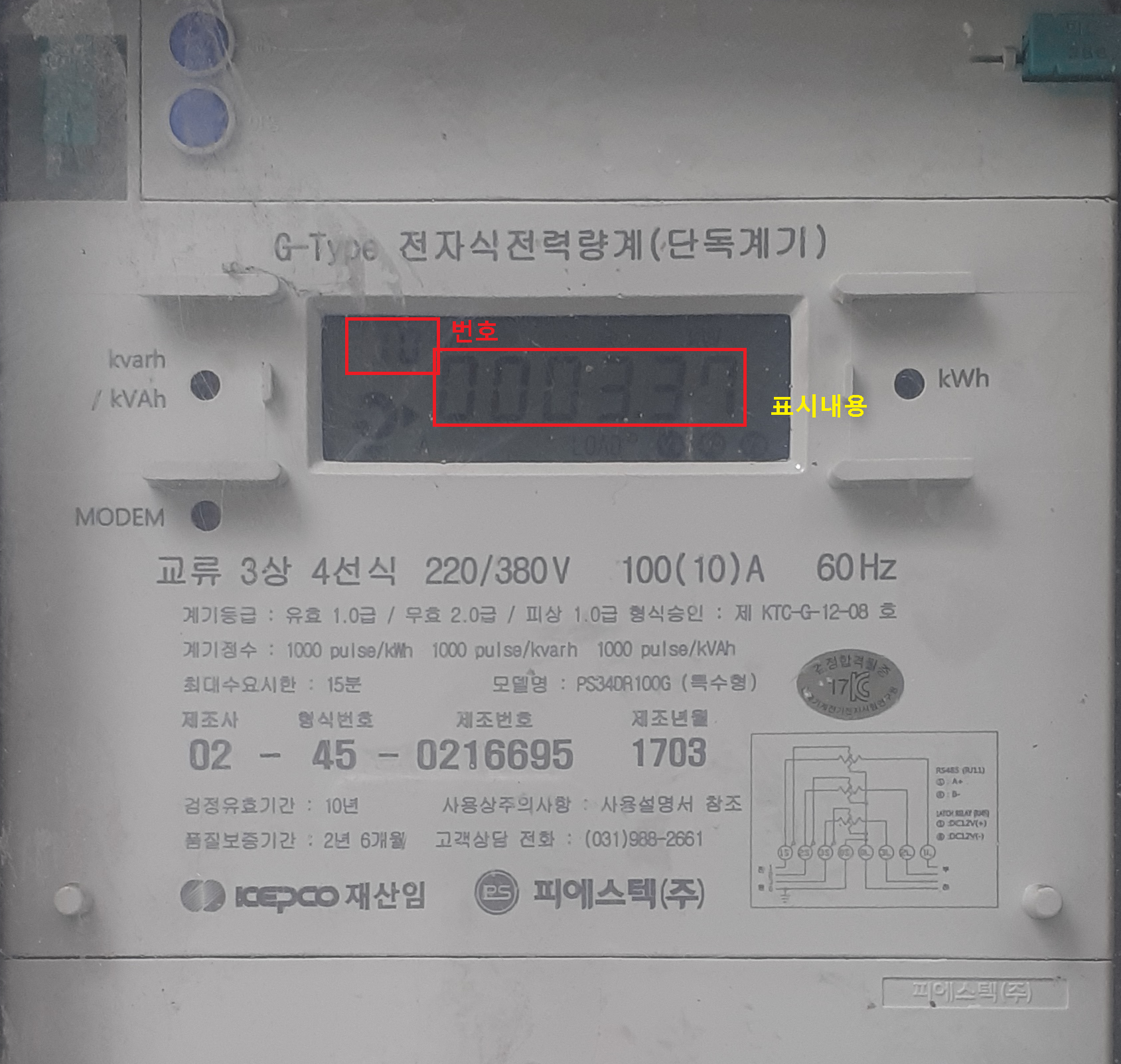 계약 전력 10KW는 번호가 1~10까지 표시되고, 계약전력 20KW 계량기는 계량기 자체는 같지만