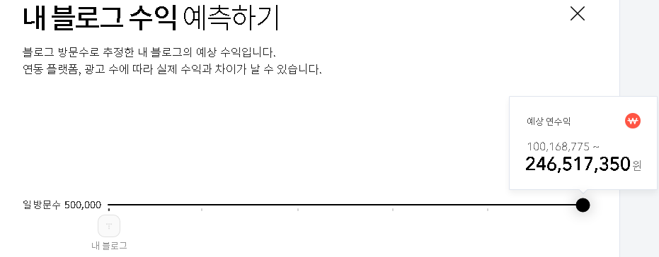 최대치로 해보니 일 방문자50만명이면 예상 연수익이 1억~2억4천만원이다