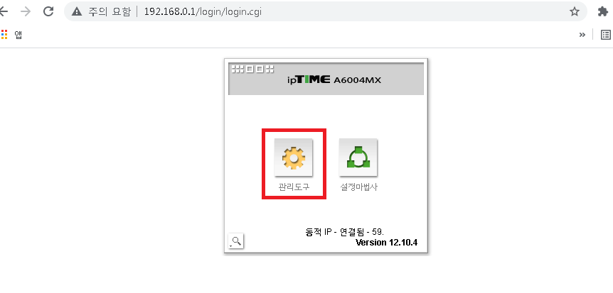 관리도구를 클릭하면 공유기 설정페이지로 이동됩니다.