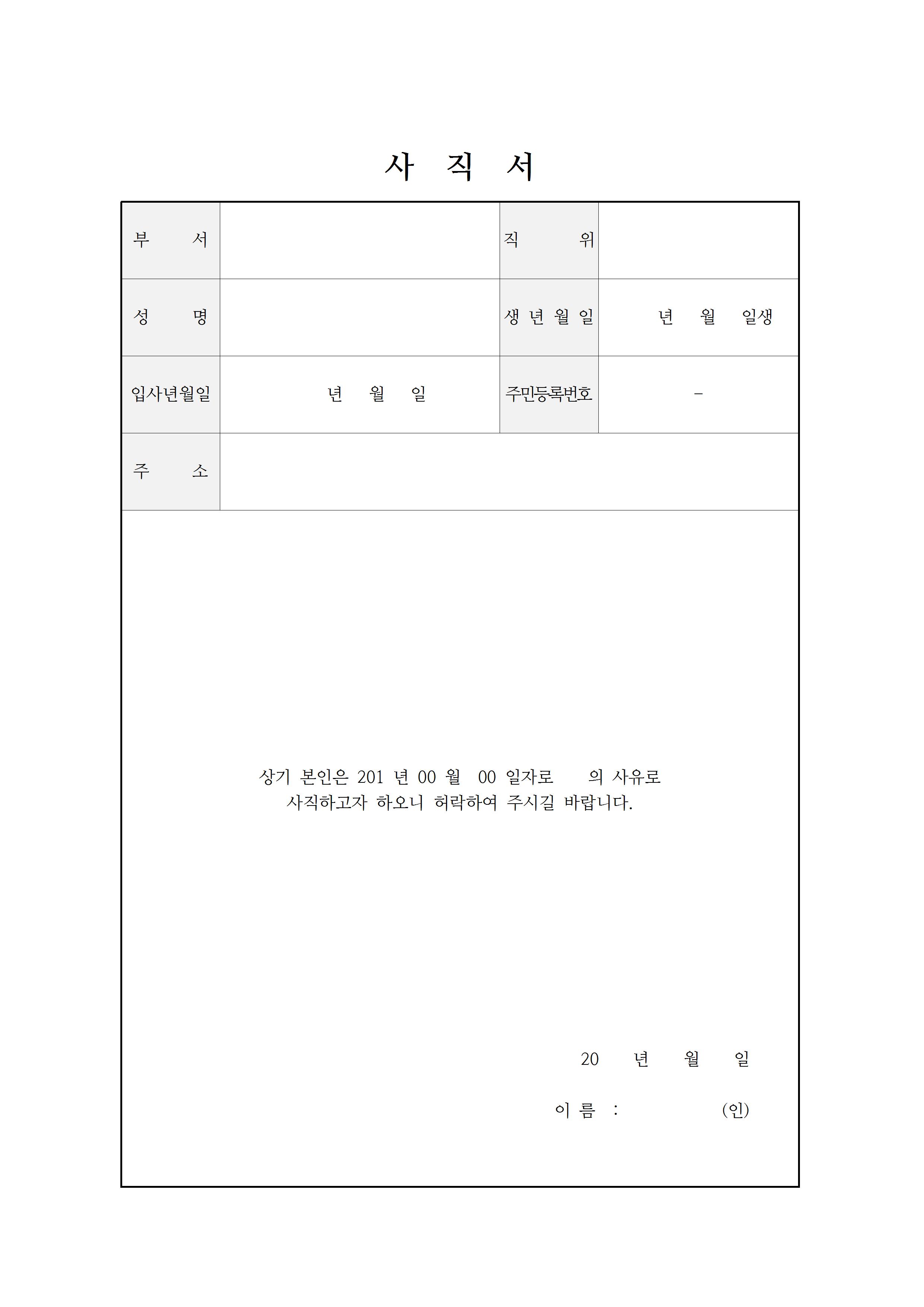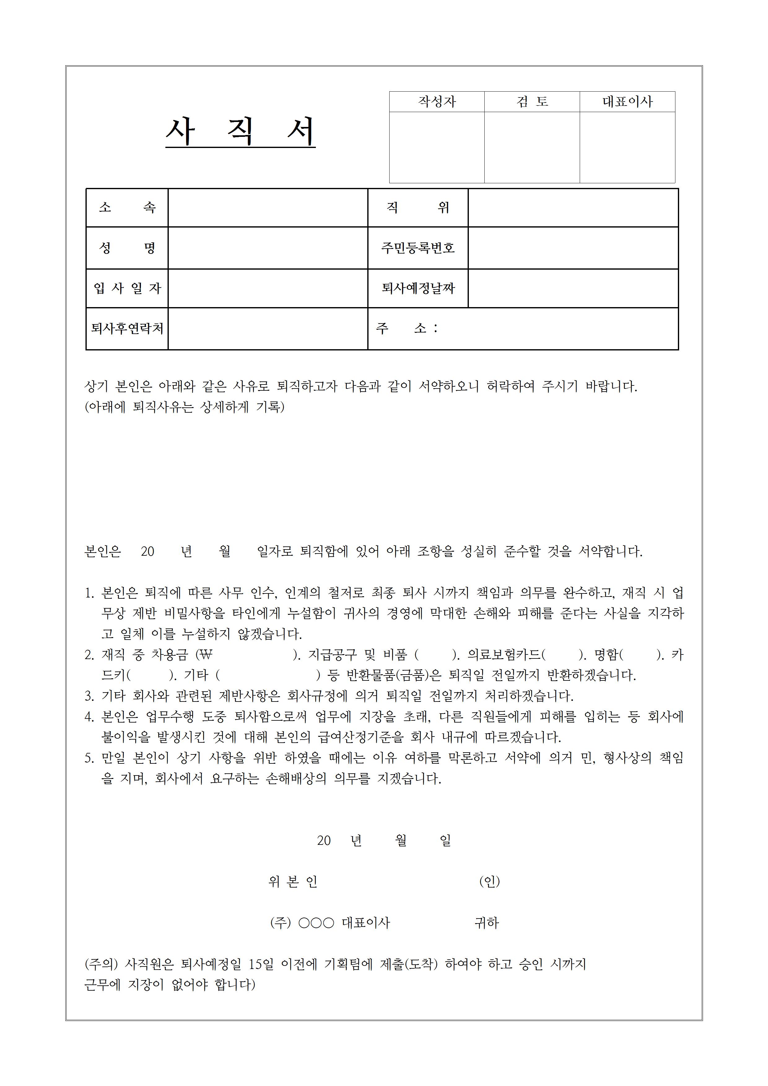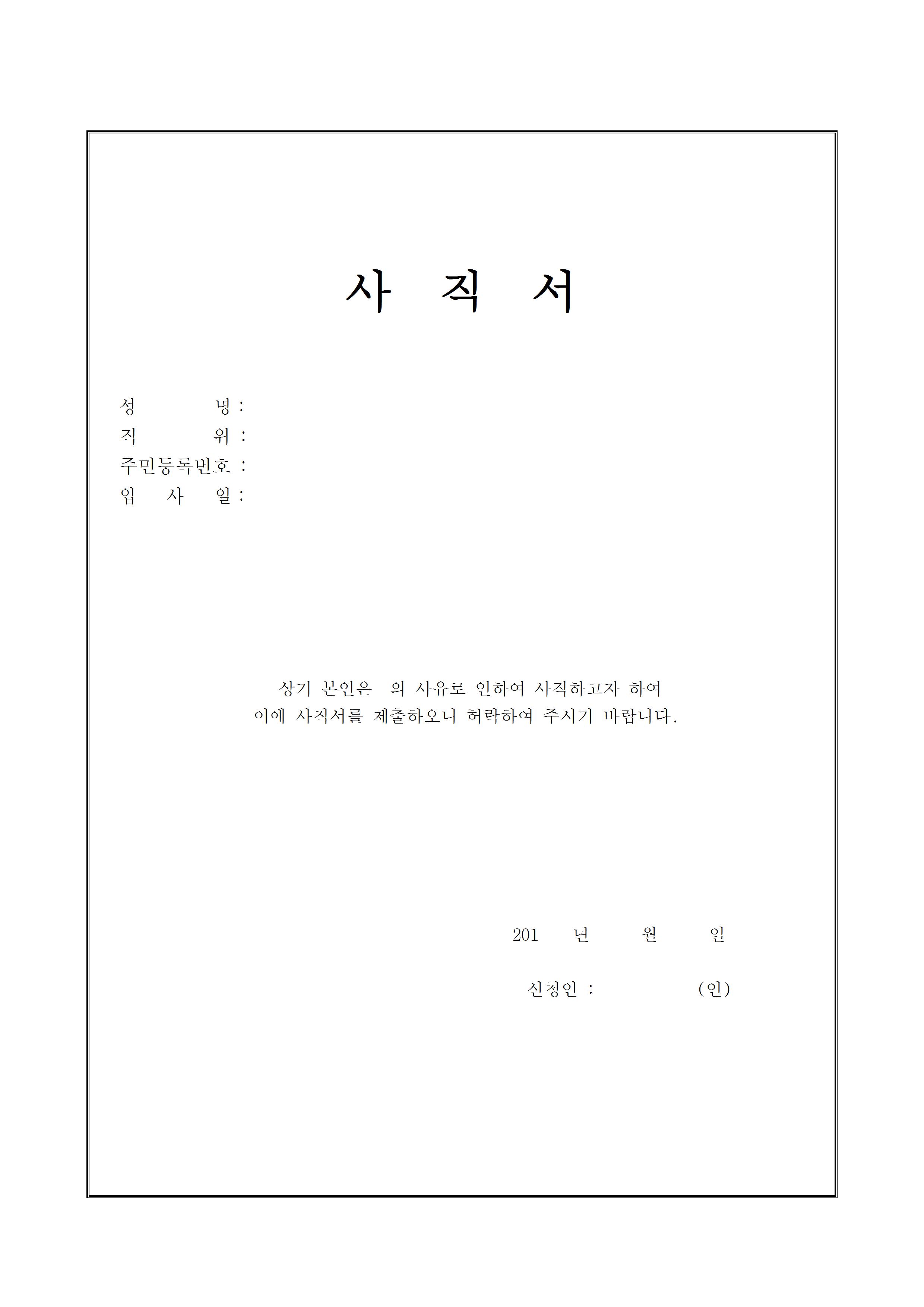 사직서 양식은 정해진 기본 틀은 없지만 해당 회사에 따른 표준양식이 있는지