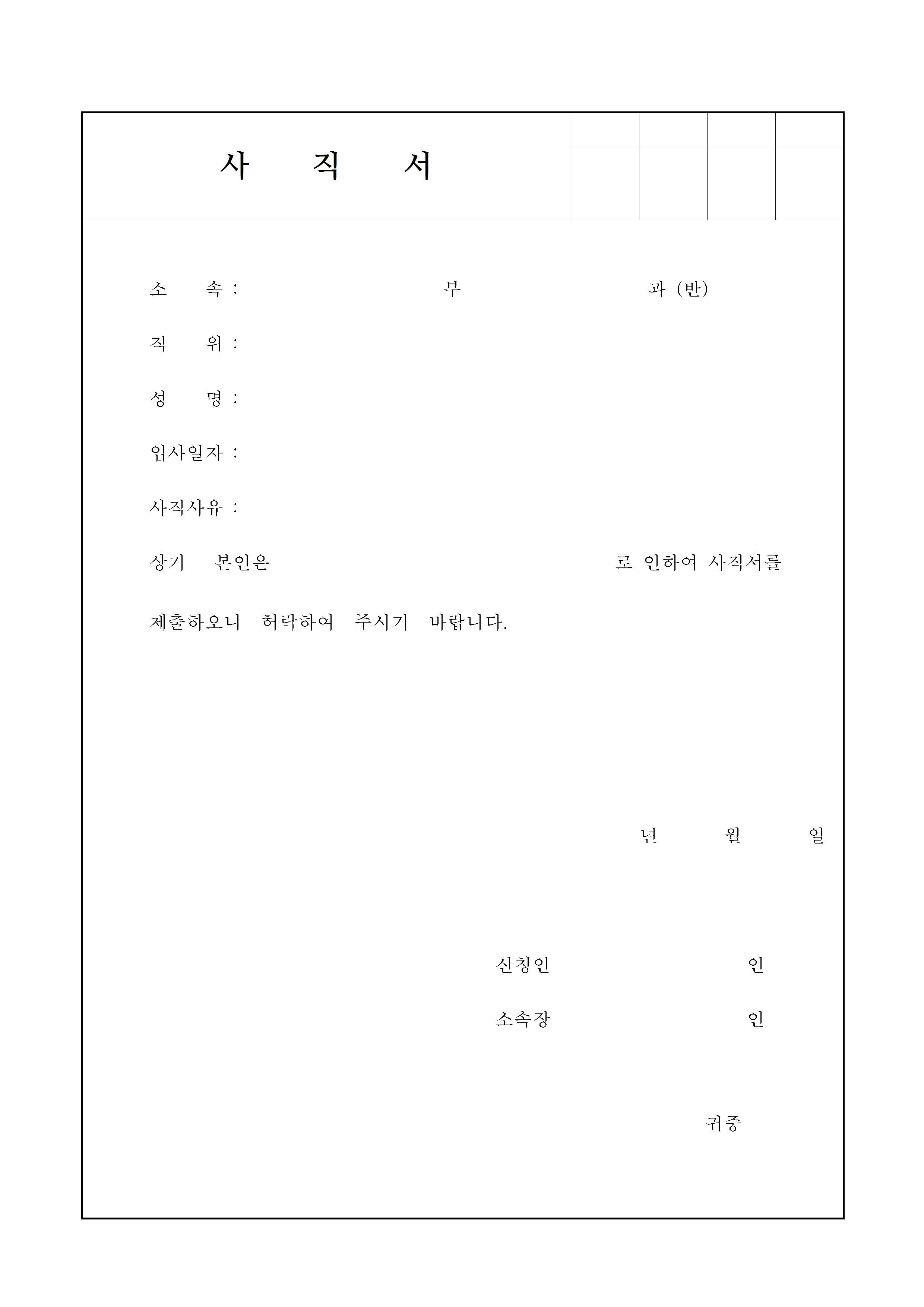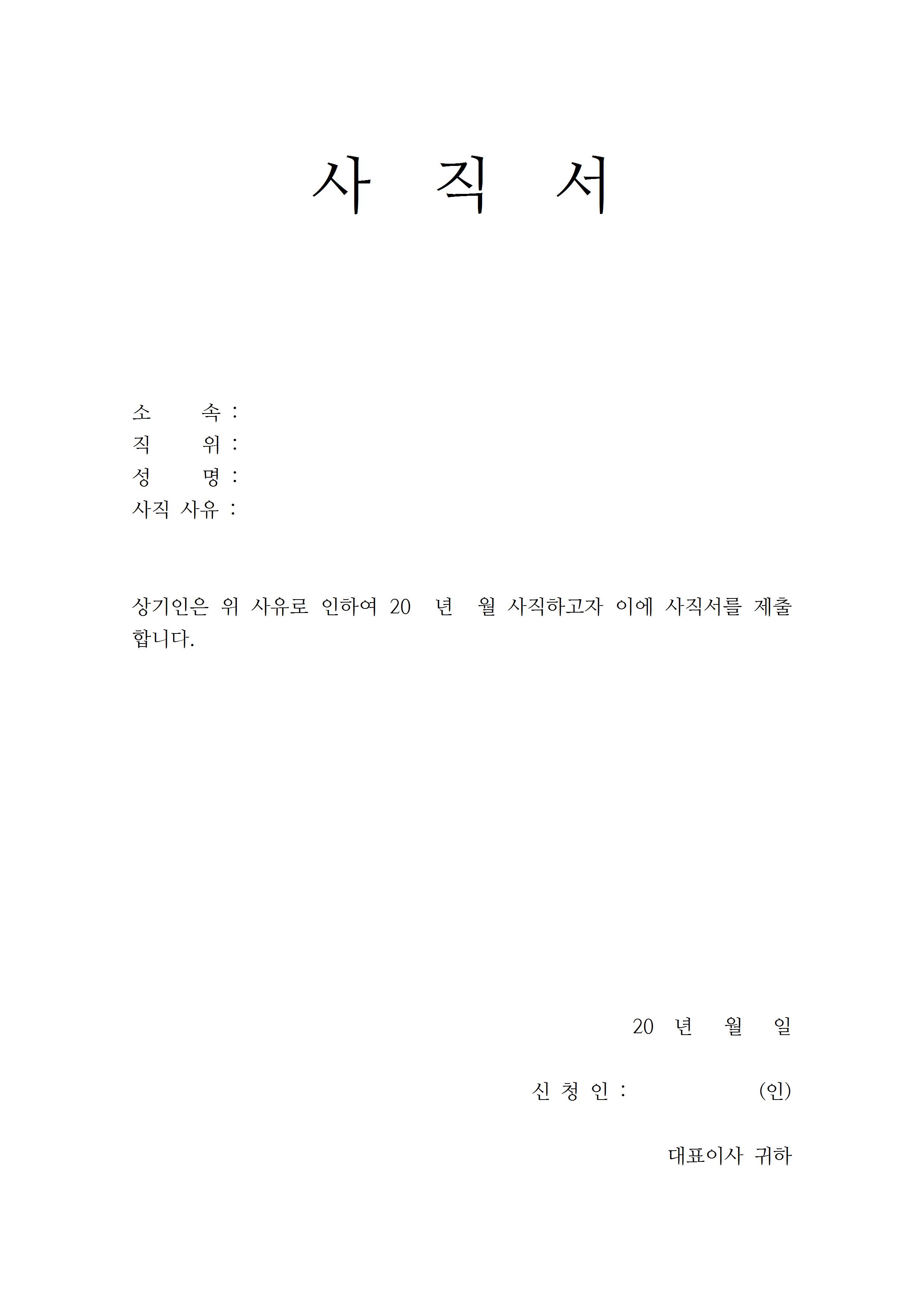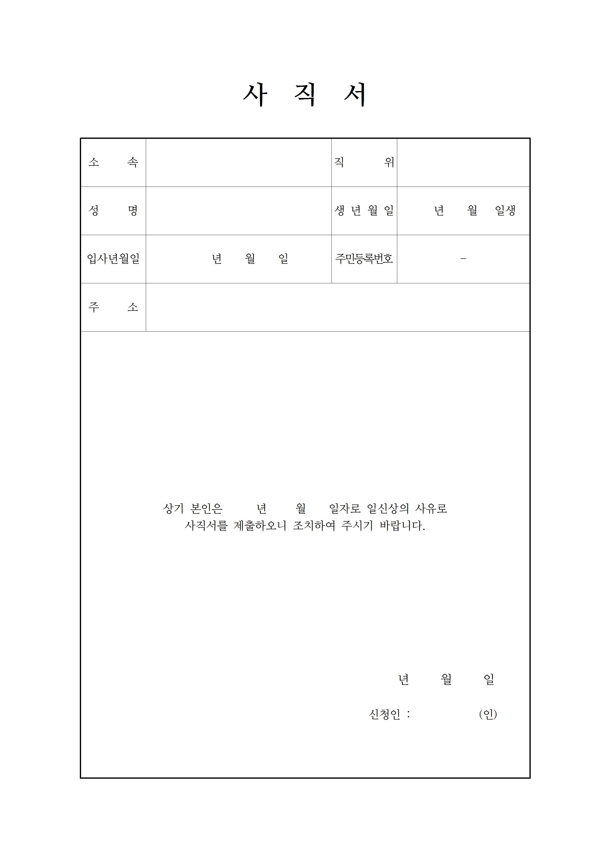 사직서 양식은 정해진 기본 틀은 없지만 해당 회사에 따른 표준양식이 있는지