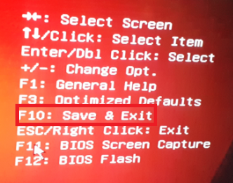 마지막으로 바이오스를 저장하고 재부팅하는 단축키인 'F10'기를 눌러주면 바이오스 설정값이 저장된후