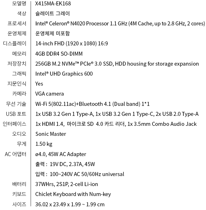 결국 ASUS X415MA-EK168 당첨
