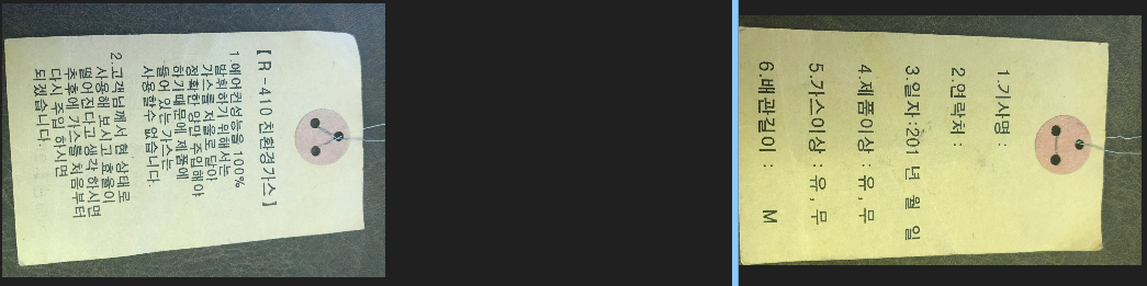실외기 뒤에 달려있는 딱지 하나