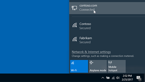 - 작업 표시줄에서 Wi-Fi network > 속성에 연결 된 Wi-Fi 네트워크 > wi-fi 네트워크를 선택 합니다.