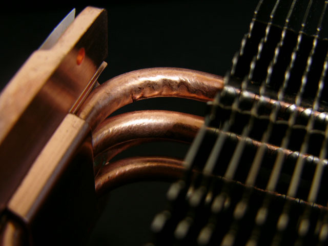 금속 핀이 촘촘히 새겨져있는 모양으로 가장자리 부분은 굉장히 부피 대비 접촉면적이 많도록 설계되어 있습니다.