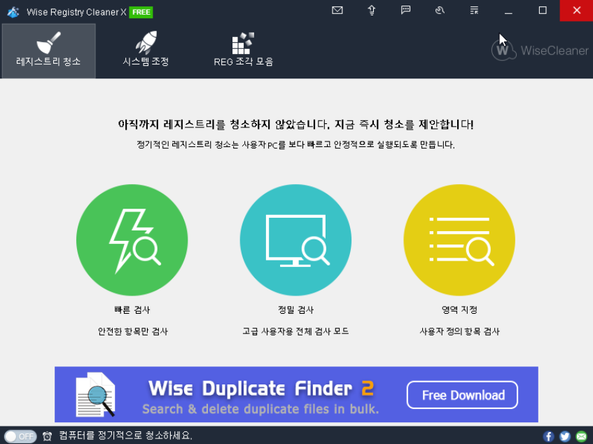 Wise Registry Cleaner는 빠른 스캔과 정밀 스캔의 2가지 스캔 모드를 제공합니다.
