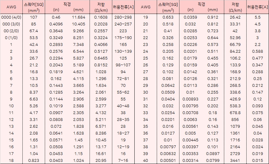 (내부 전원선, SATA 케이블) 등은 대부분 AWG 규격을 씁니다.