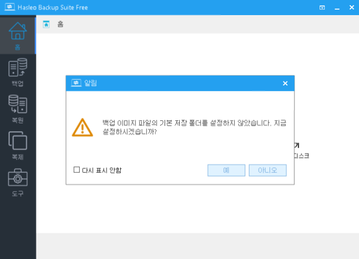 프로그램을 처음 실행시킨 화면입니다. 백업 폴더를 지정하셔도 되며 추후 백업시에 따로 지정을 해도 됩니다.
