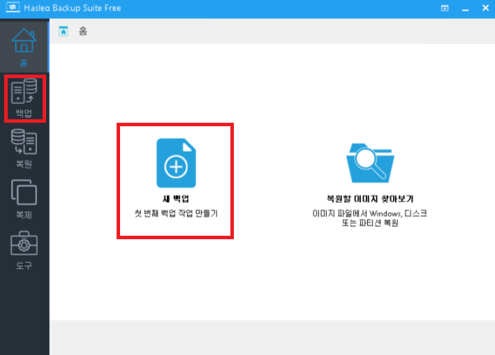 Hasleo Backup Suite를 처음 설치하고 실행하면 아래 사진과 같이 뜹니다.