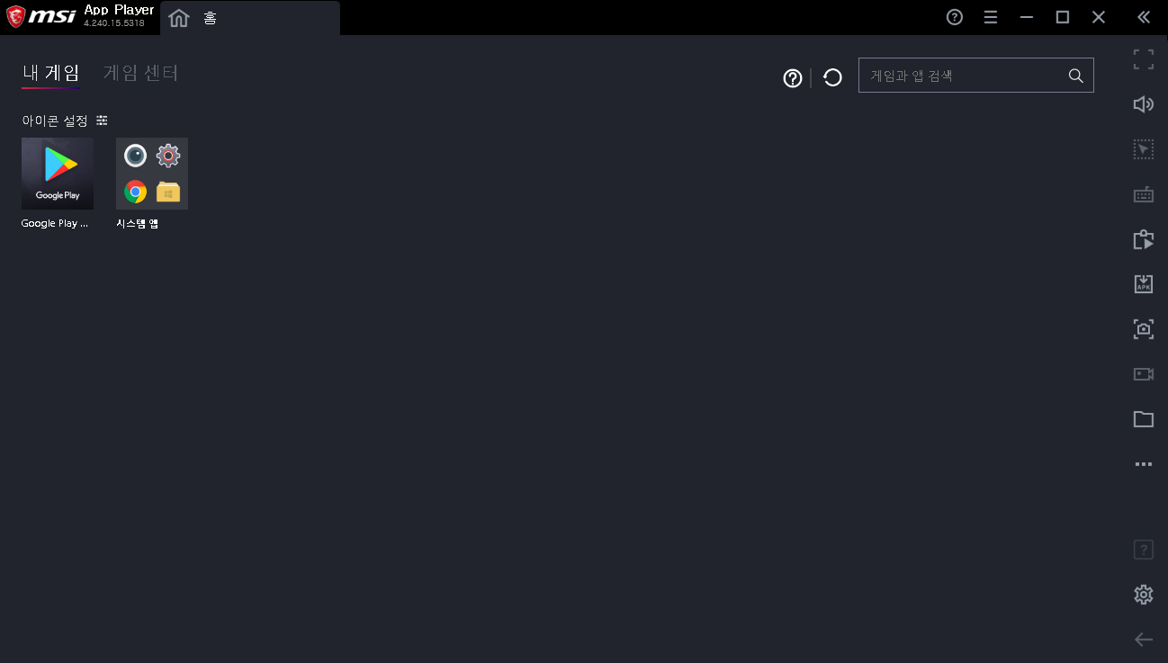 MSI 앱플레이어를 실행한 화면입니다. 기존 앱플레이어들과 차이는 없습니다.