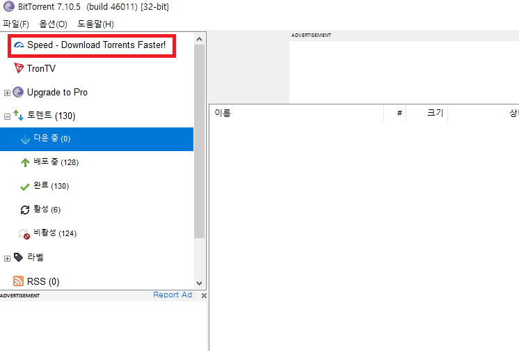 일단 비트토렌트에서 왼쪽 상단에 SPEED 메뉴를 클릭하면 토렌트 스피트 페이지가 열립니다.