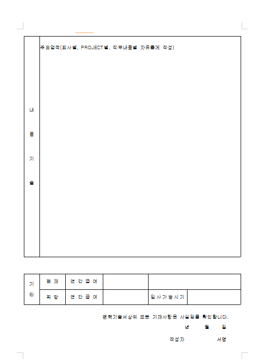 작성한 서식을 경력경력기술서라고 합니다.
