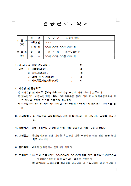 연봉근로계약서는 근로자가 1년 동안 근로를 제공하고 이에 대해 회사는