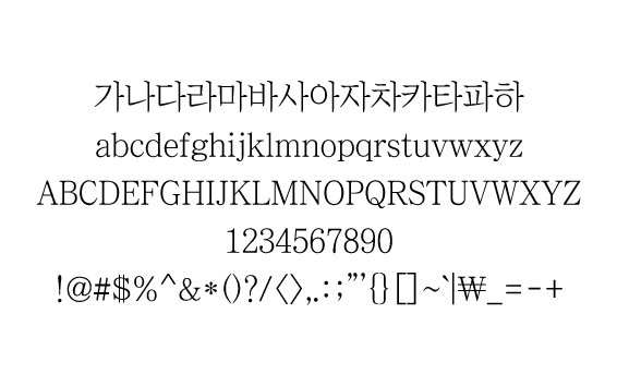 기존 명조체를 계승 발전시켜 획의 단순한 과정을 거쳐 현대적 미감에 맞게 제작한 새로운 명조체입니다.