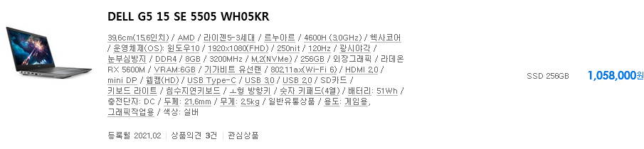 그래서 외장그래픽이 달리고 6기가 넘는 모델로 검색을 했습니다