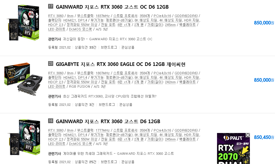 채굴붐이 꺼진 19년20년초까지만 해도 중고 지포스1060 3G 모델이10~13만원에 거래되고 있었느나