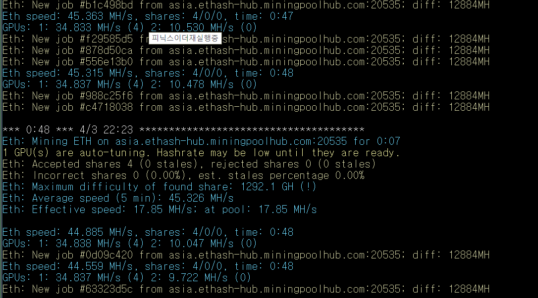 그러나 채굴풀에서 확인하면 내장그래픽은 채굴이 안되는걸로 보입니다.