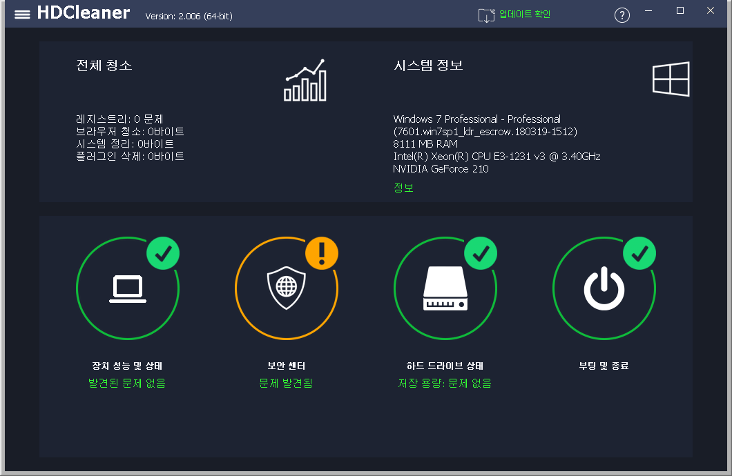 레지스트리 백업, 조각 모음 기능 등이 포함되어 있습니다.
