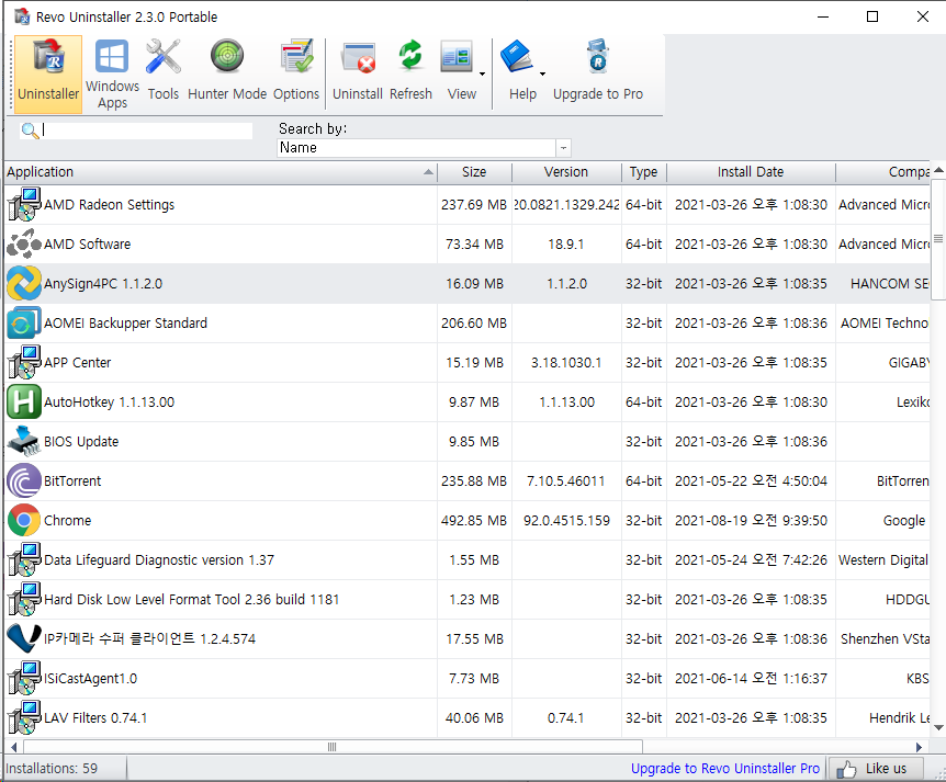 Revo Uninstaller 프로그램은 윈도우 시스템에 설치된 프로그램들을 확실하게