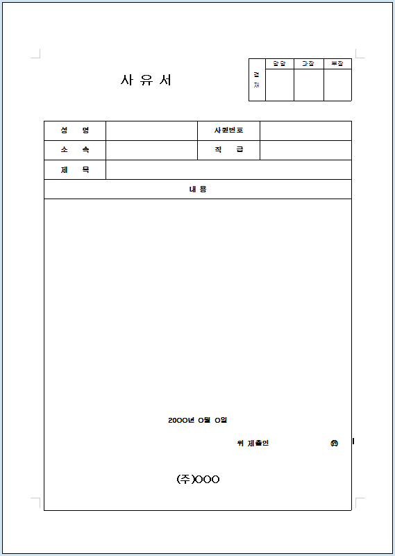 사유서의 내용은 회사마다 다를 수 있지만 기본적으로 작성자의 인적사항과,