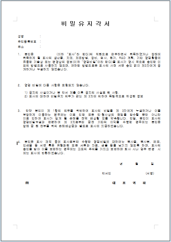 특히 기업에 대한 민감한 정보를 다루는 부서일수록 비밀유지각서를