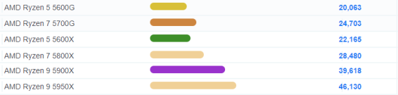 라이젠4세대 5천시리즈 CPU PASSMARK 벤치마크 성능비교표입니다.