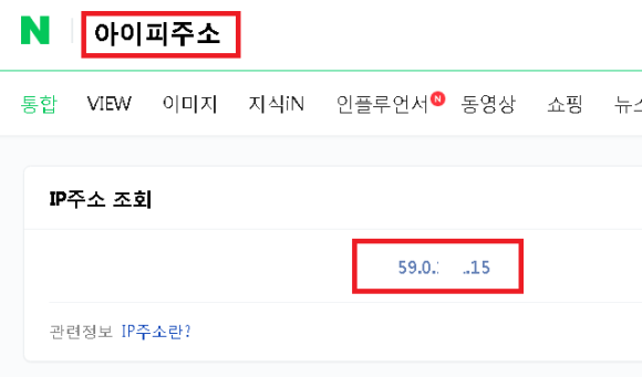 첫째는 네이버 검색창에 "아이피주소" 라고 검색해보면