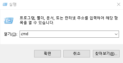 여기에 cmd 를 입력한 후 엔터를 치시거나 확인을 클릭하면