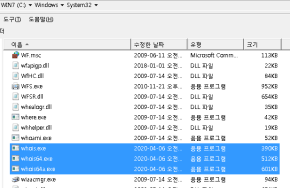 whois.exe는 32비트 운영체제용, whois64.exe는 64비트 운영체제용,