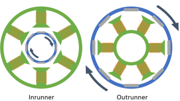 브러시리스 모터는 구조에 따라 이너(Inner)형과 아우터(Outer)형,