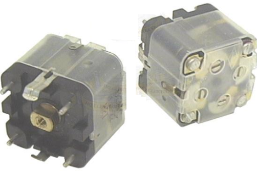 공기를 유전체로 사용한 가변용량 콘덴서로, 라디오 방송을 선택하는 튜너 등에 사용합니다.