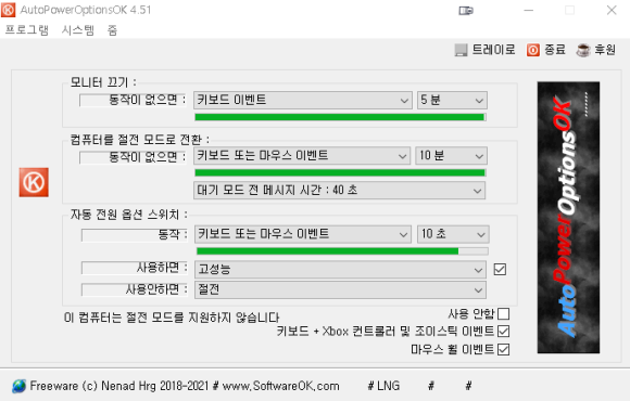AutoPowerOptionsOK는 컴퓨터를 사용하지 않을 때 모니터 끄기,