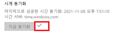 바로 시간을 동기화 시키고 싶을 경우에는 위 사진과 같이 지금 동기화를 클릭하시면