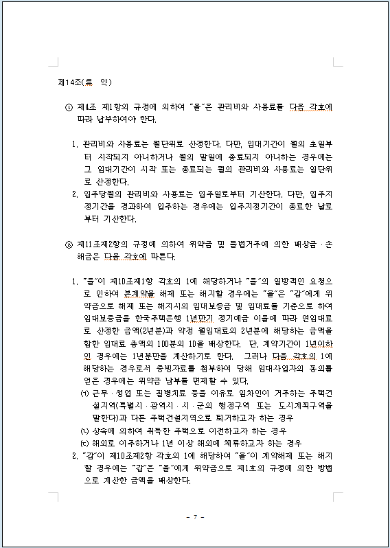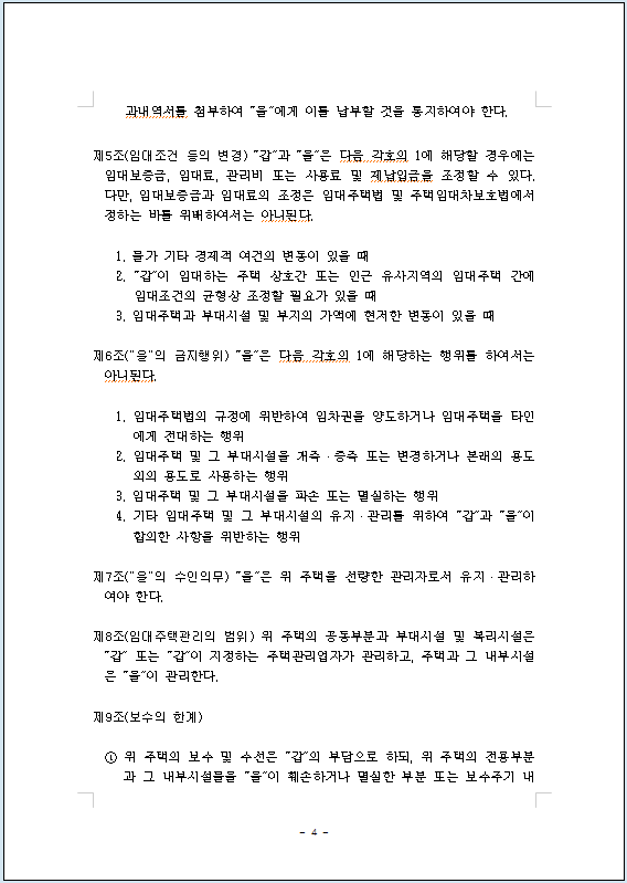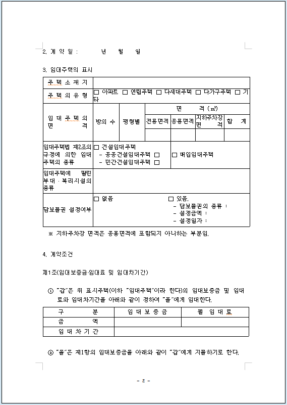 • 계약 목적물은 후일 분쟁이 없도록 주소, 면적 등을 상세하게 기재해야 합니다.