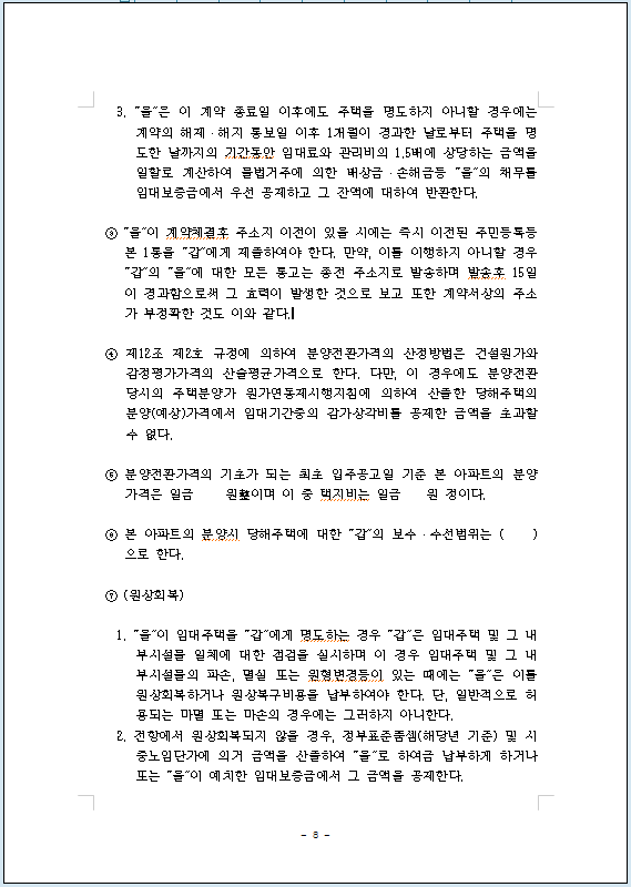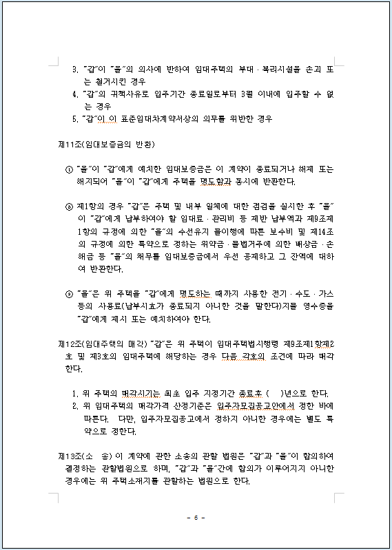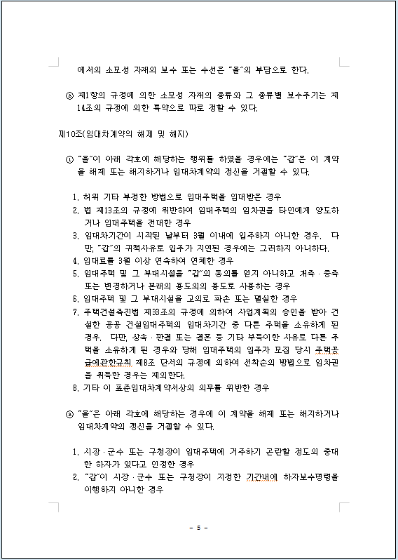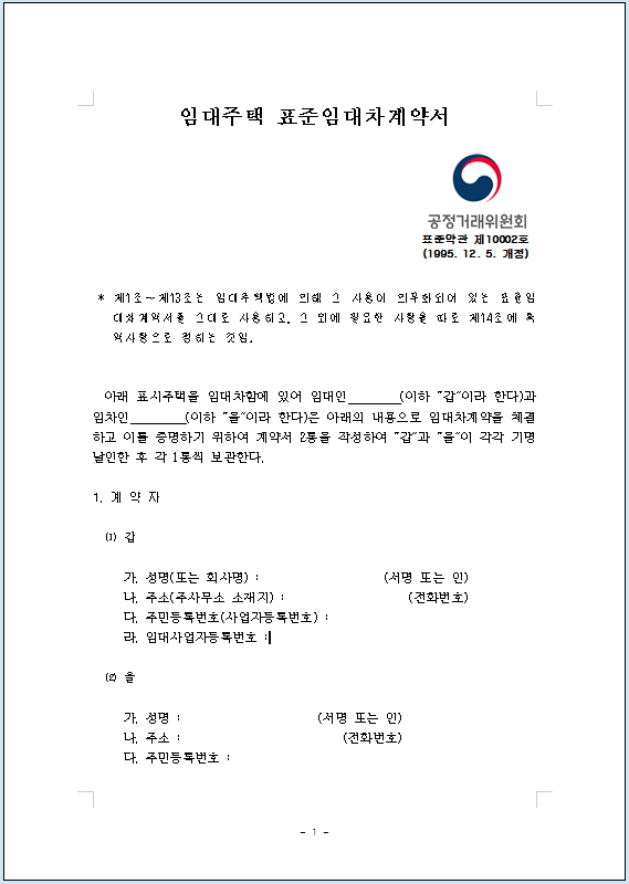 공정거래위원회에서 배포하는 임대주택 표준임대차계약서 한글 양식입니다.