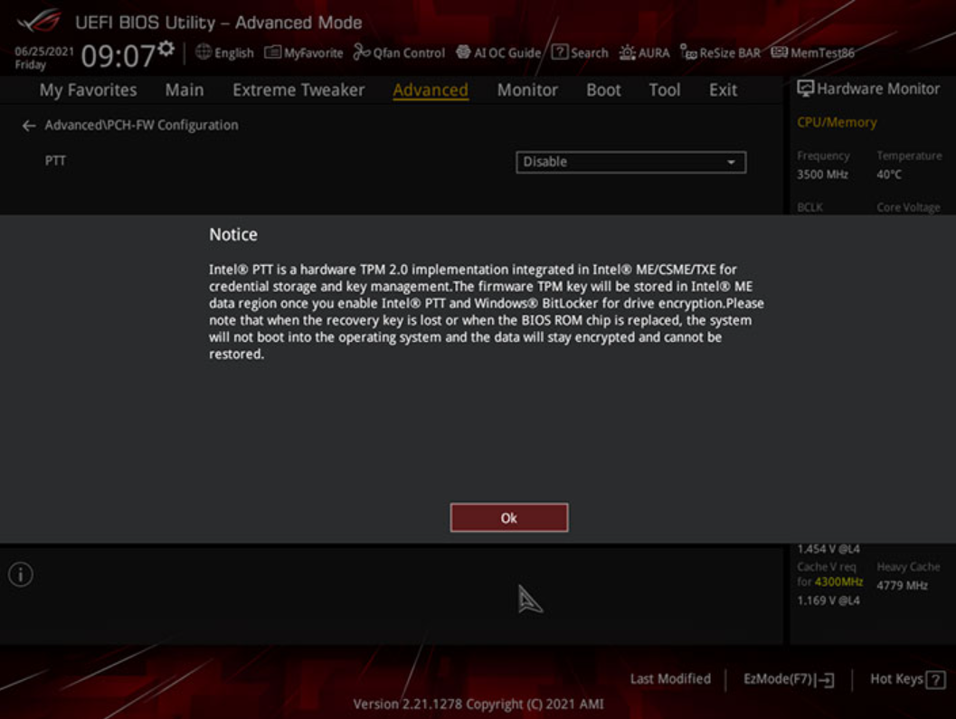 ASUS 인텔 CPU 메인보드 TPM 2.0 활성화 방법