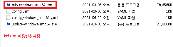 위 사진과 같이 나오는 경우는 아래 사진과 같이 btfs로 파일명을 변경해줍니다.