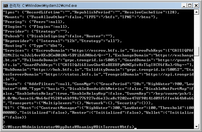 그럼 명령어 창이 뜨면서 btfs가 실행됩니다.